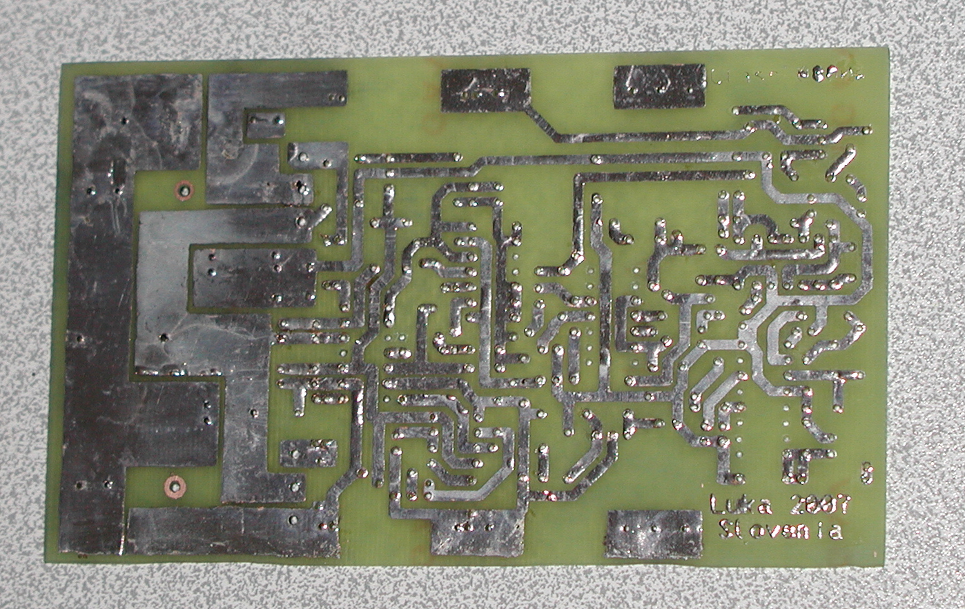 On picture above one can see that one chip is missing.That is overcurrent limit, which becomes active when ther is bigger voltage drop on current sense resistor then set. This activates the timer, which disables output for time that is set by components, which is in my case a bit over 1s. After that output is enabled again.